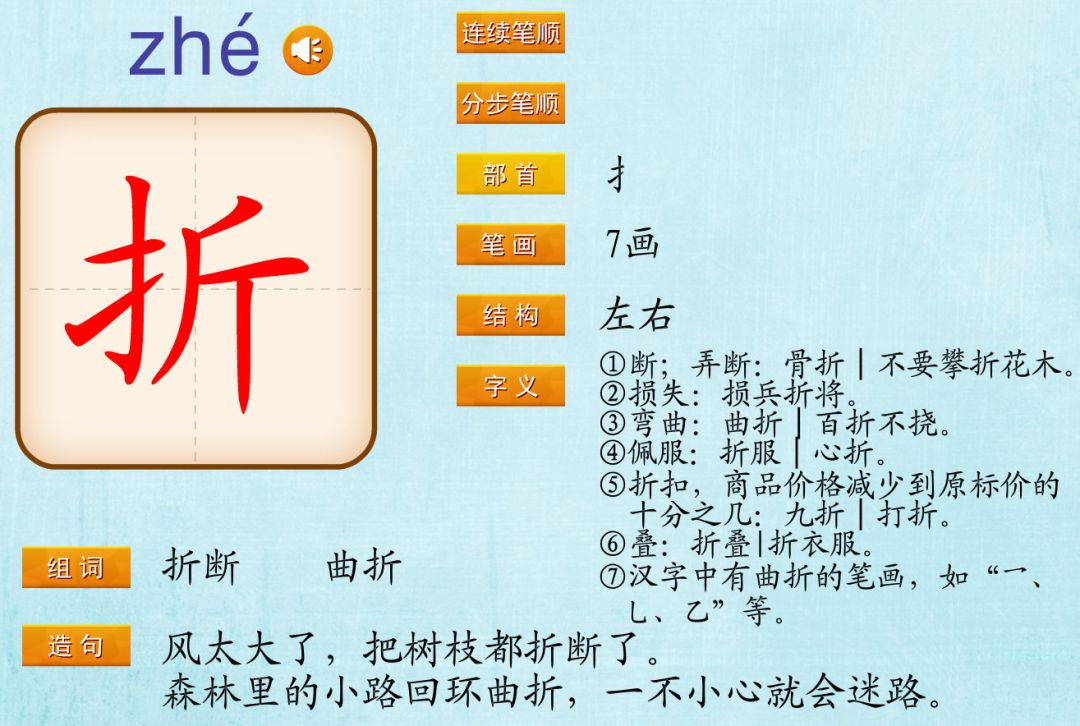 折shé(折本)zhé(打折)zhē(折腾)
