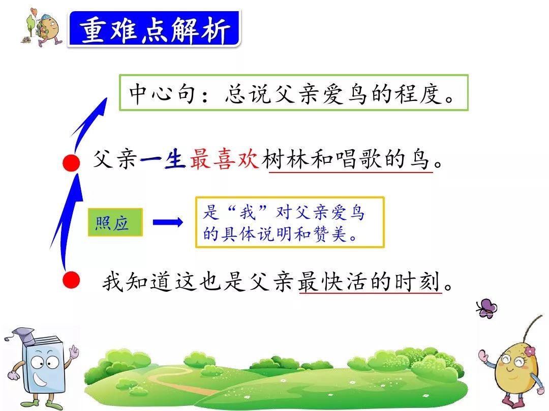 通过这些词语,一个爱鸟、知鸟的父亲形象更加清晰、生动。