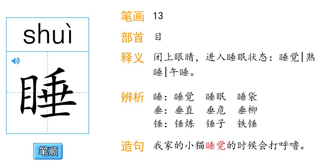 睡shuì(睡觉、睡眠、呼呼大睡)