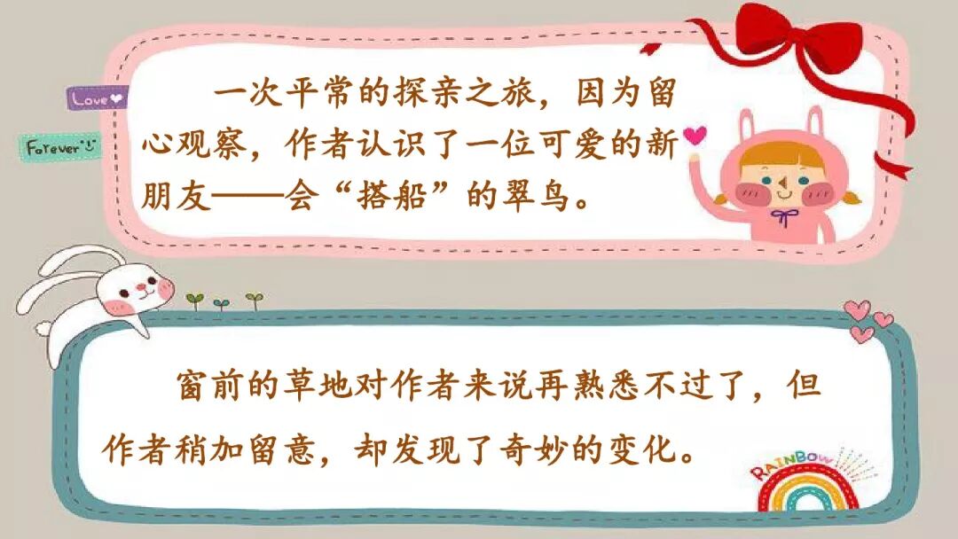 为了让大家能更好的预习新课文,教研室的老师开设了【微课堂】栏目,详细讲解每一课的知识点,有名师课堂视频,课件图解,还有精选同步练习。是家长、学生复习预习好帮手。建议各位家长、老师,为孩子收藏!让孩子提高预习和巩固效果!!