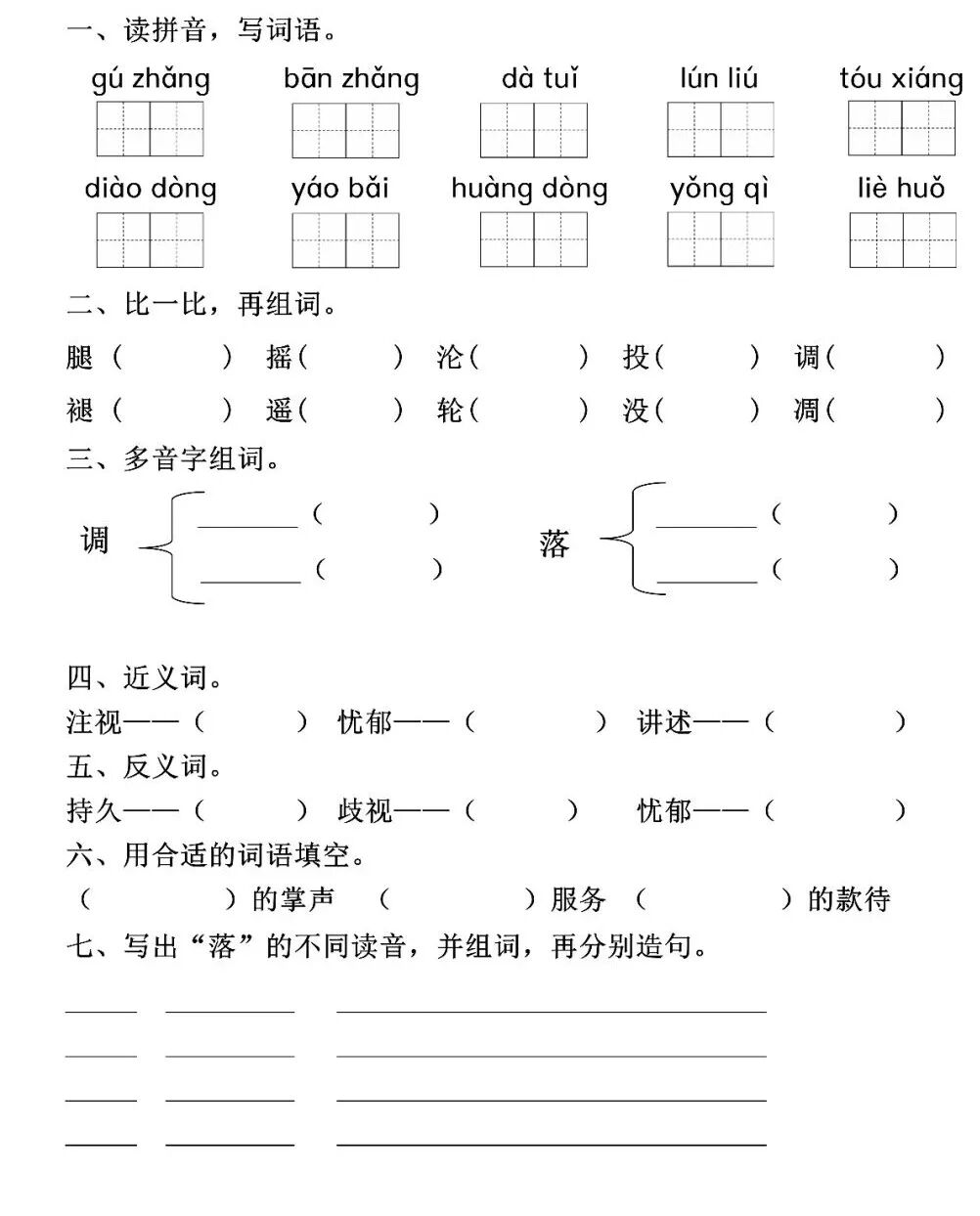 褪(褪色)遥(遥远)轮(轮流)没(没有)凋(凋零)