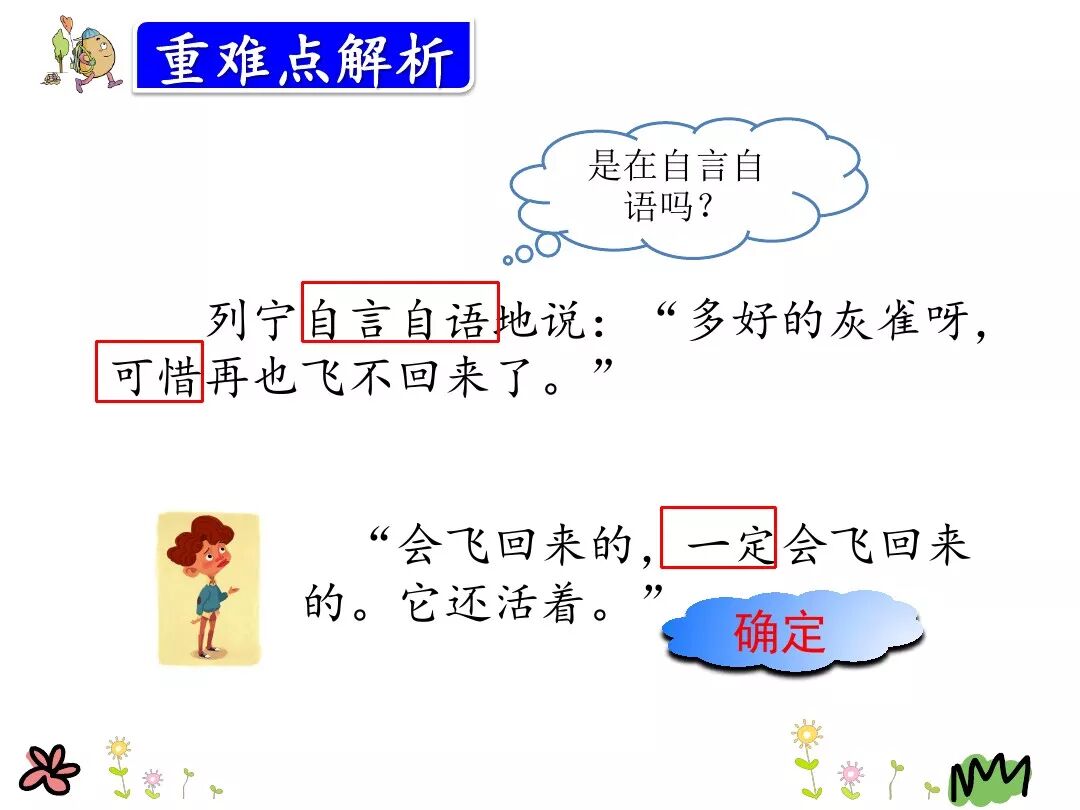 (3)男孩说:“灰雀会飞回来的,它 活着。”