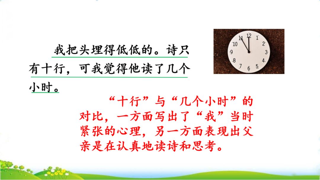 9、我把头埋得低低的。诗只有十行,可我觉得他读了几个小时。