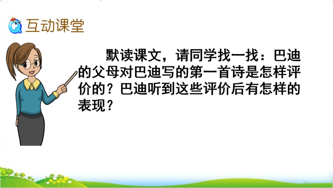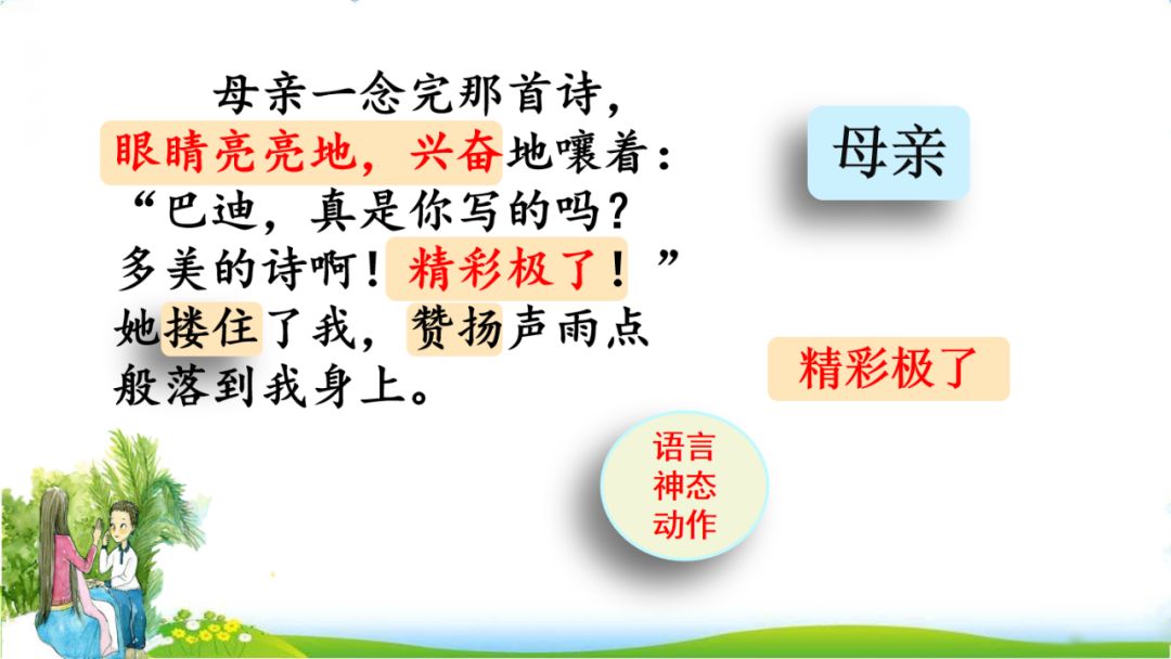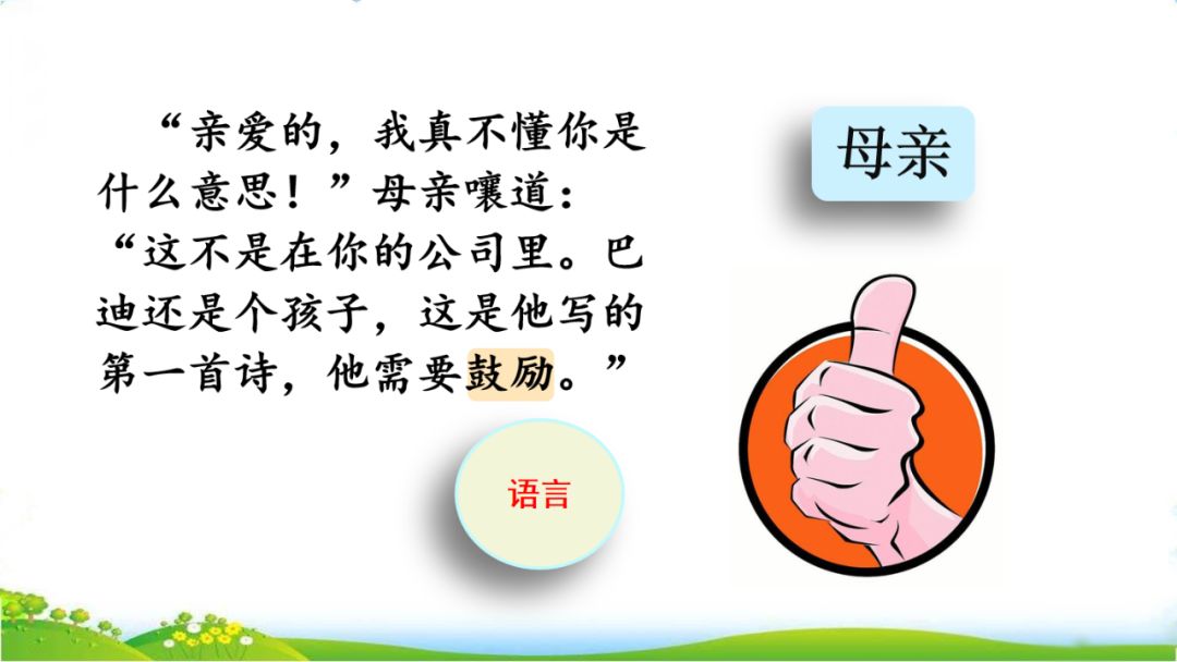 7、“亲爱的,发生了一件美妙的事。巴迪写了一首诗,精彩极了……”母亲上前说道。