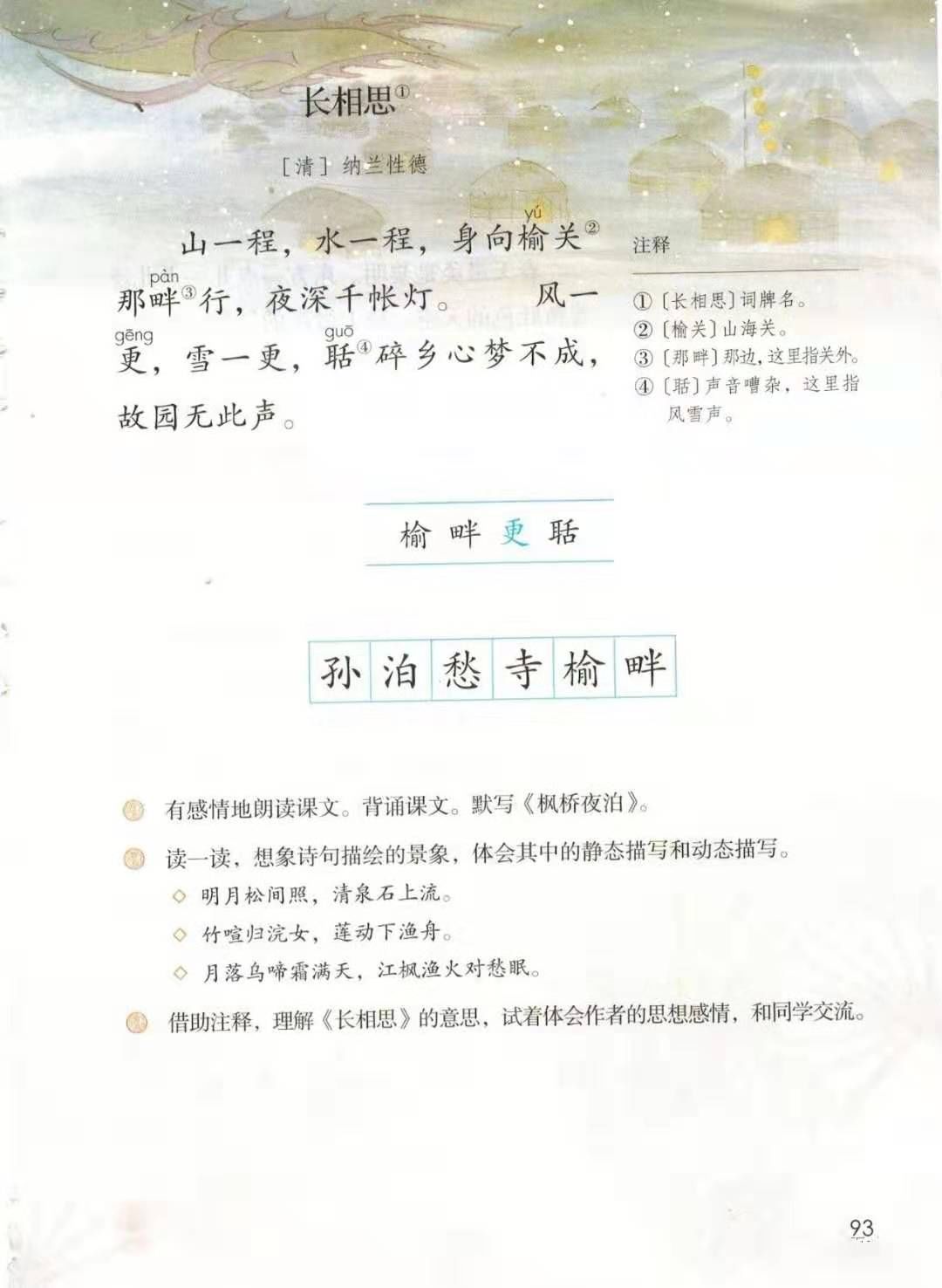 ①长相思:词牌名。②程:里程。③榆关:山海关。④那畔:那边,指关外。⑤千帐:形容帐篷很多。⑥更:旧时一夜分五更。⑦聒:声音嘈杂,这里指风雪声。⑧故园:故乡。