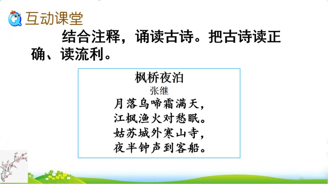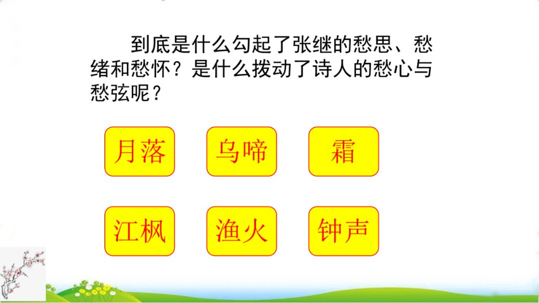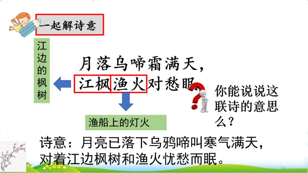 (3)月落乌啼霜满天,江枫渔火对愁眠。
