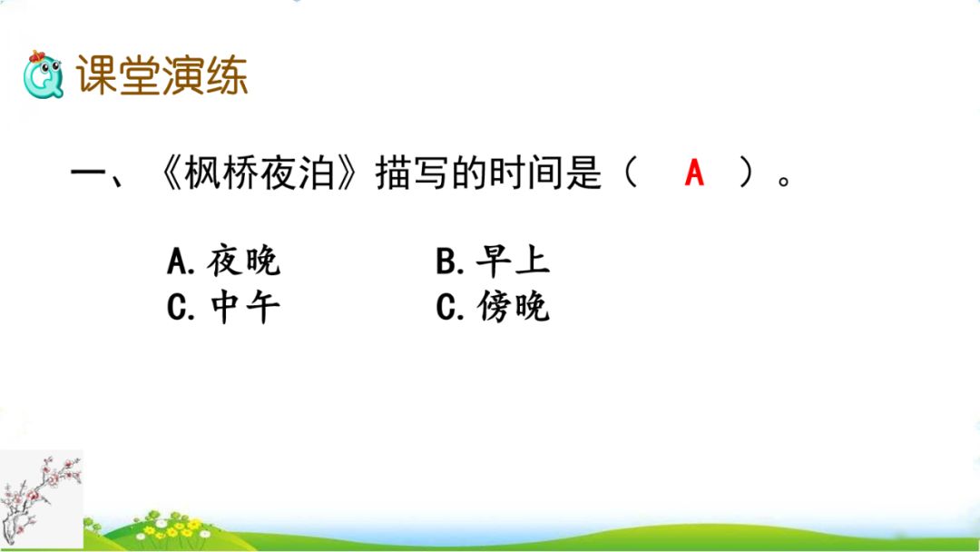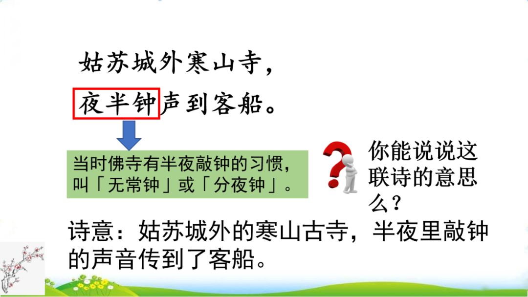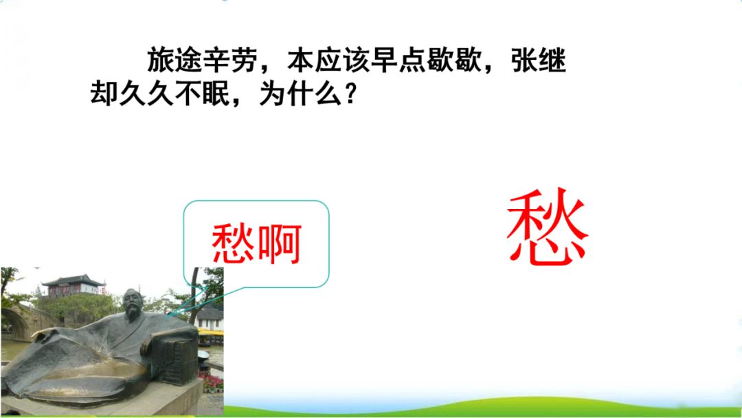 2.月落 霜满天 江枫渔火 叫。睡觉。