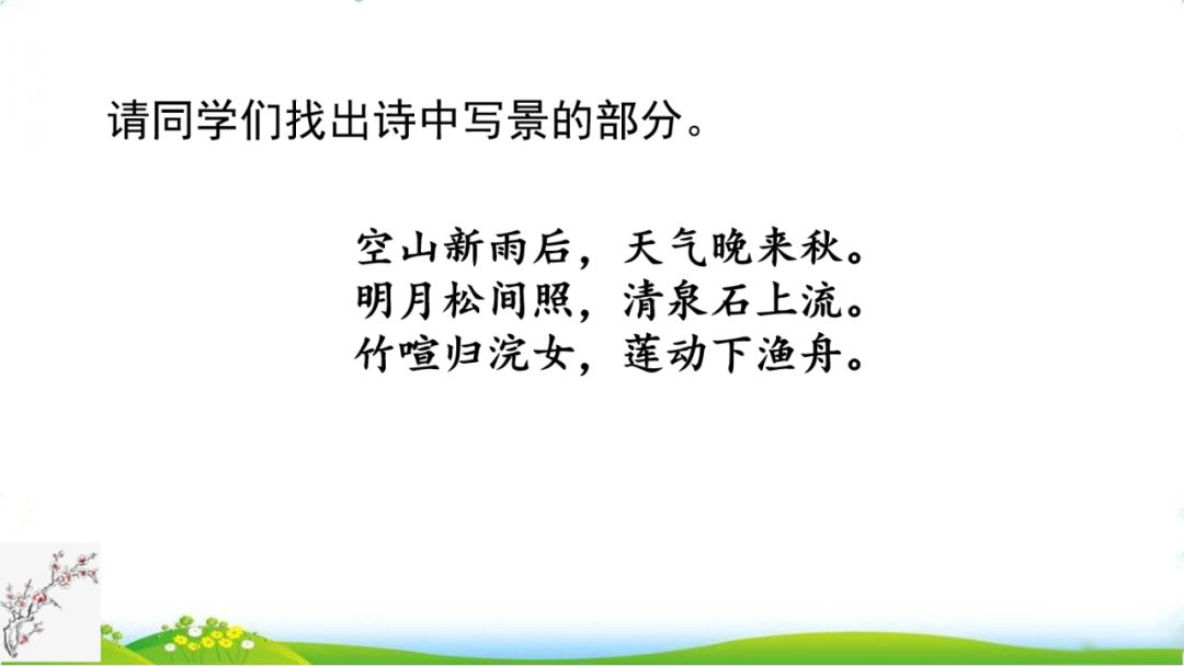 (1)明月松间照,清泉石上流。