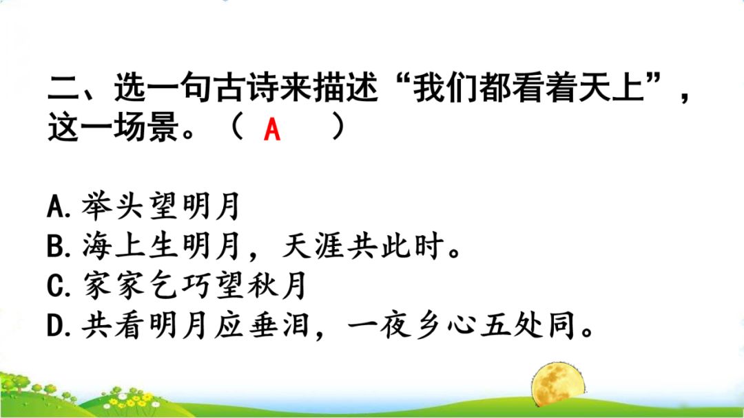 一、文中的“我们”在哪儿找到了“月亮”?( )(多选)