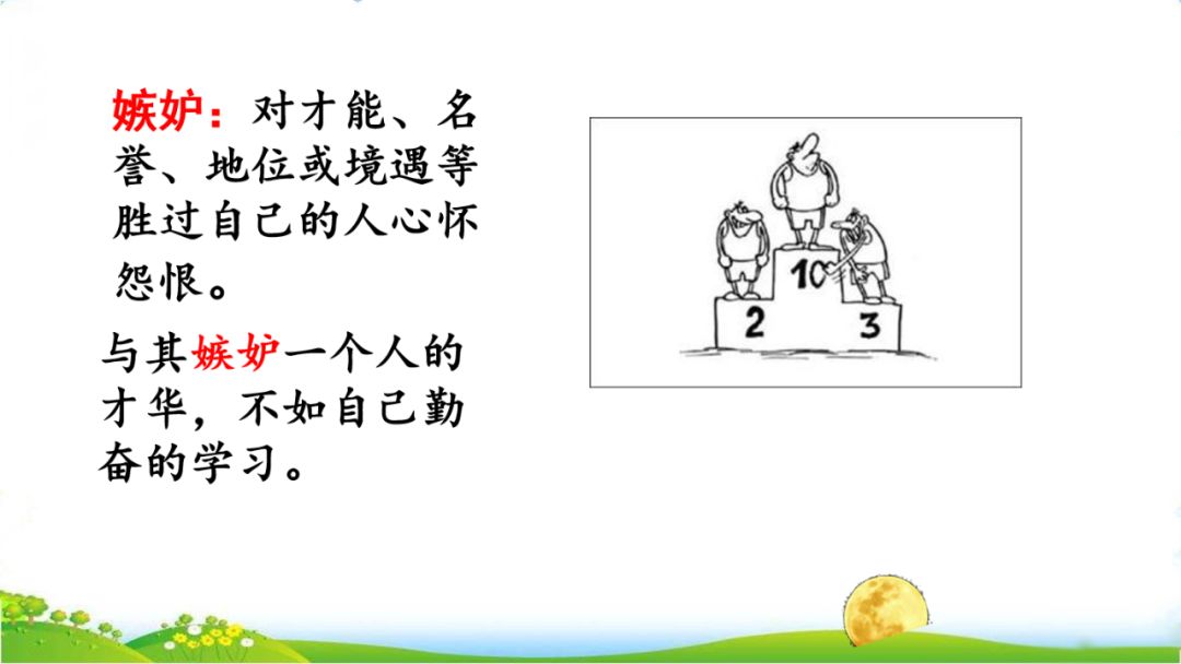 嫉妒:对才能、名誉、地位或境遇等胜过自己的人心怀怨恨。