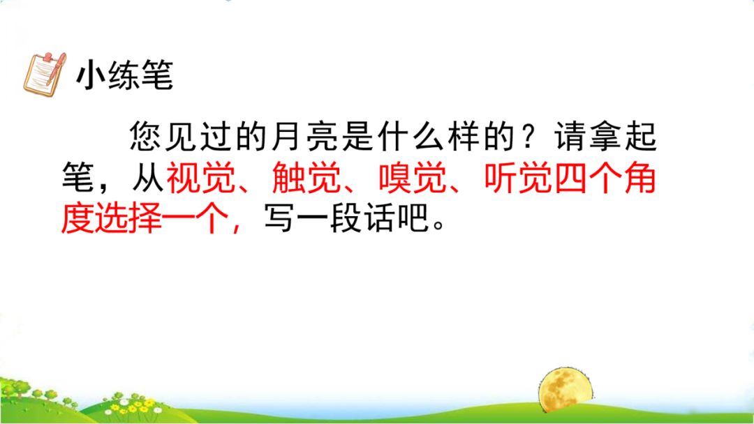 2、默读课文,说说月亮的足迹都出现在哪里。