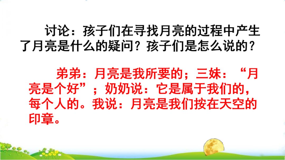 1. 奶奶说:“它走了,它是 的。你们快出去寻月吧。”