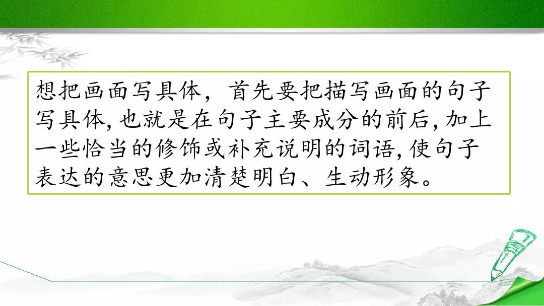 2.读下面两组例句,体会作者是如何把一个画面写具体的,仿照着写一写。