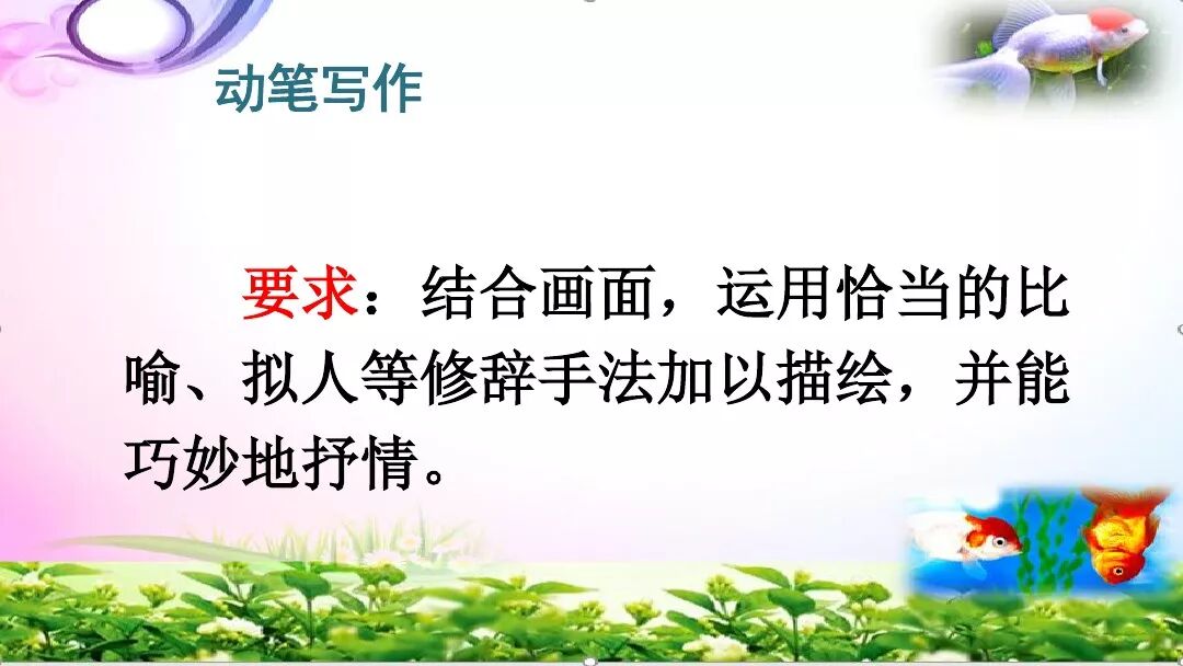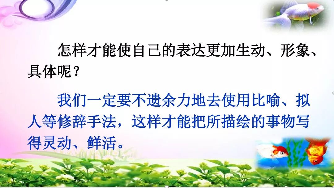 4.运用恰当的写作手法。为了把自然现象或自然景观写得具体生动,我们可以展开丰富的联想,在联想的基础上运用恰当的形容词和比喻、拟人等修辞手法,这样写出来的自然现象或自然景观才会具体、形象,从而深深地感染读者,给人美好的感受。