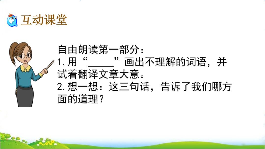 为了让大家能更好的预习新课文,教研室的老师开设了【微课堂】栏目,详细讲解每一课的知识点,有名师课堂视频,课件图解,还有精选同步练习。是家长、学生复习预习好帮手。建议各位家长、老师,为孩子收藏!让孩子提高预习和巩固效果!!
