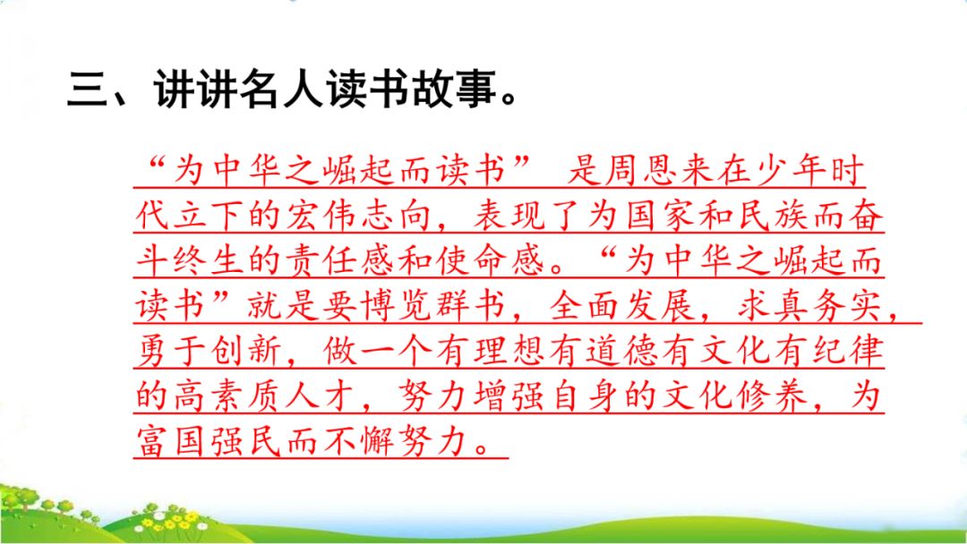 3、联系自己的读书体会,说说课文中哪些内容对你有启发。