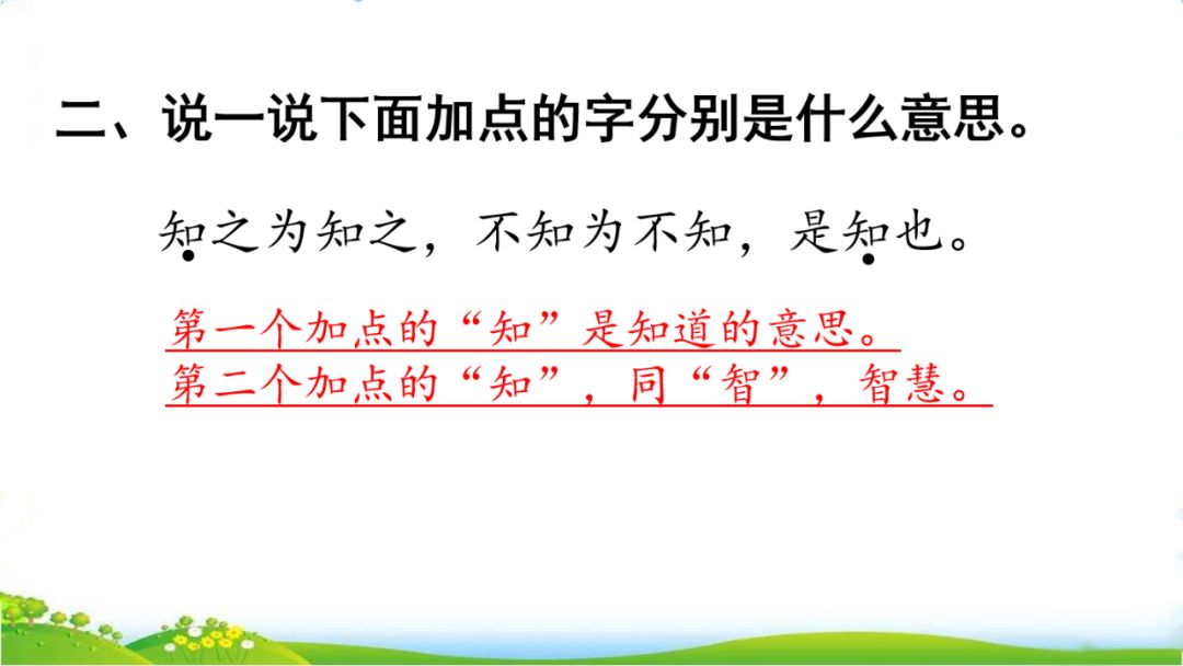 D.“知之为知之,不知为不知,是知也”中最后一个“知”字意思是知识。
