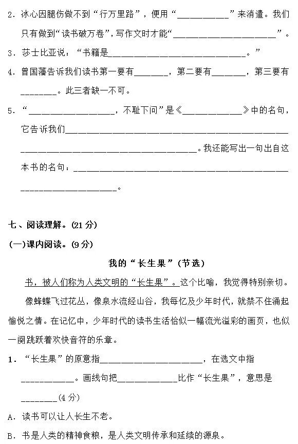 ①书,被人们称为人类文明的“长生果”。