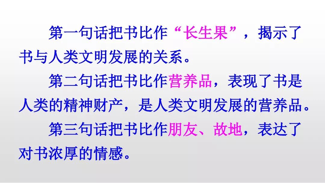 这句话把书比喻成“长生果”。