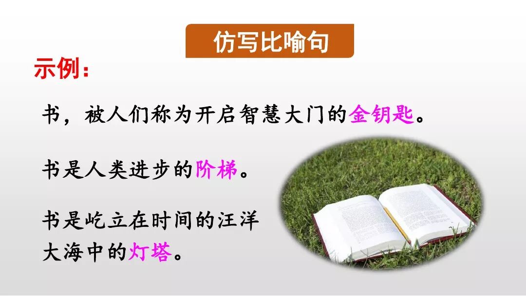 这三个都是有关带有比喻的书的名言警句,在读中不仅积累了有关读书的名言警句,还能知道有关读书的比喻句的用法。