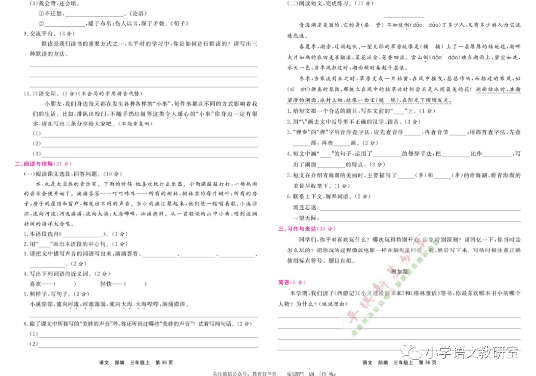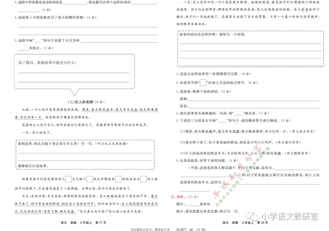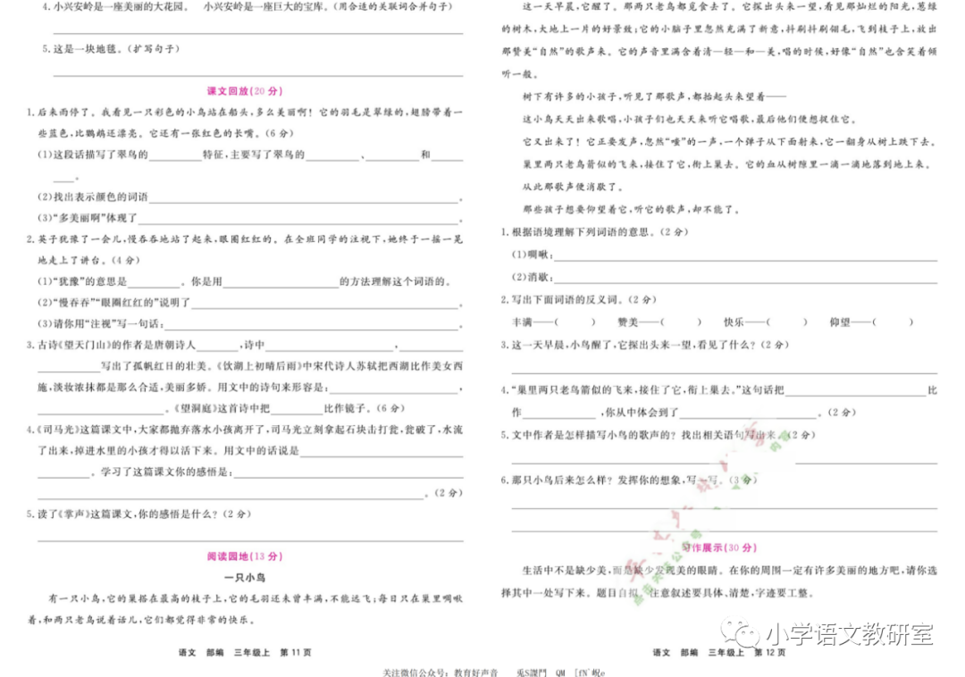 点击蓝字关注👉 小学语文教研室