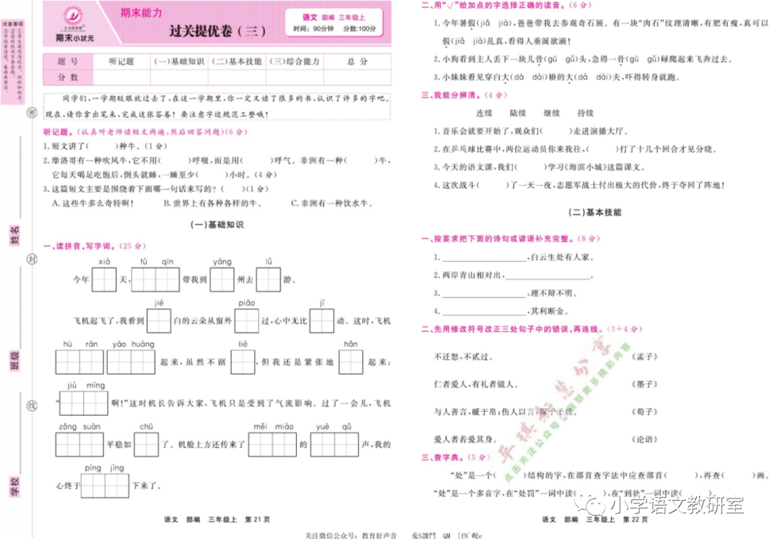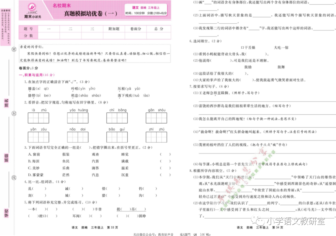 期末小状元 | 统编语文三年级(上)单元达标卷+期末过关卷&提优卷+名校真题模拟卷(含答案)!
