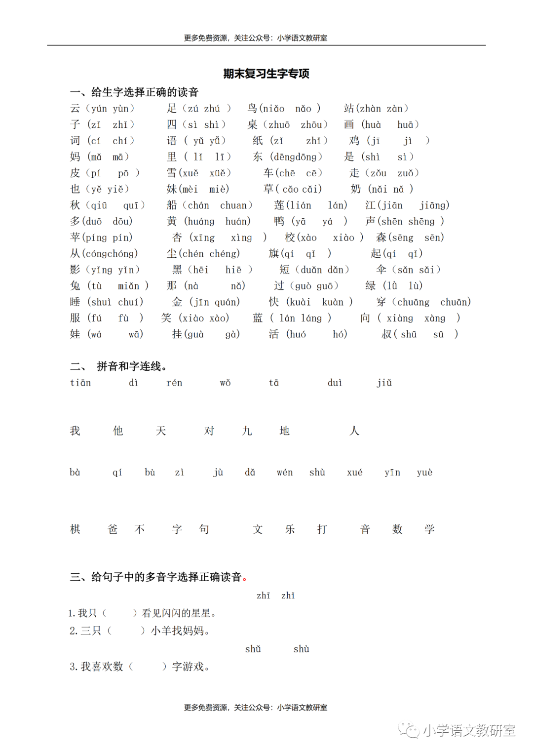 期末专项之五| 统编语文一年级(上)生字复习,可下载