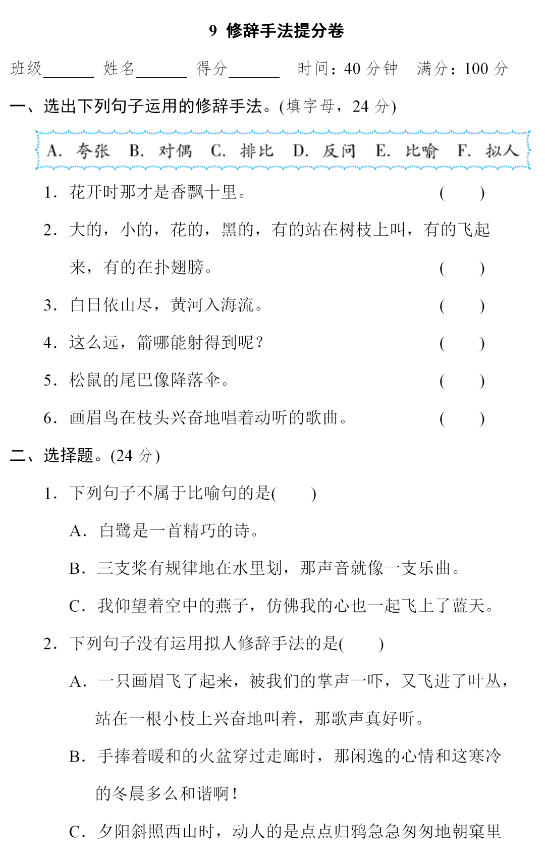 教研室的老师,今天给大家整理了《期末专项复习 | 统编语文五年级(上)修辞手法专项复习,可下载》请各位家长打印给孩子练练,更扎实的巩固全册知识点!