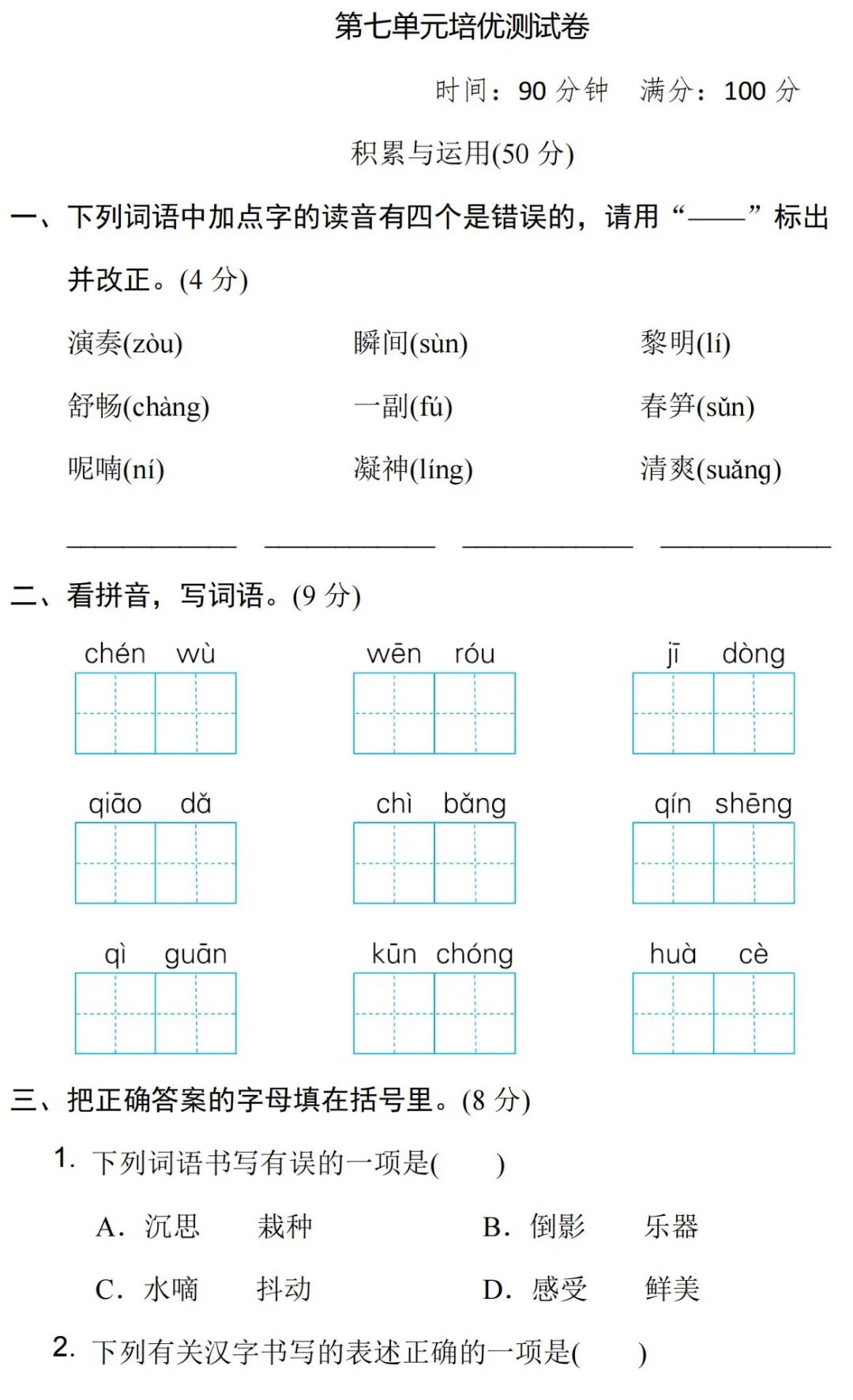 为了让孩子巩固第七单元知识点,教研室的耿老师特意为大家,精心整理了第七单元测试题,建议各位老师和家长领取,打印给孩子练习!
