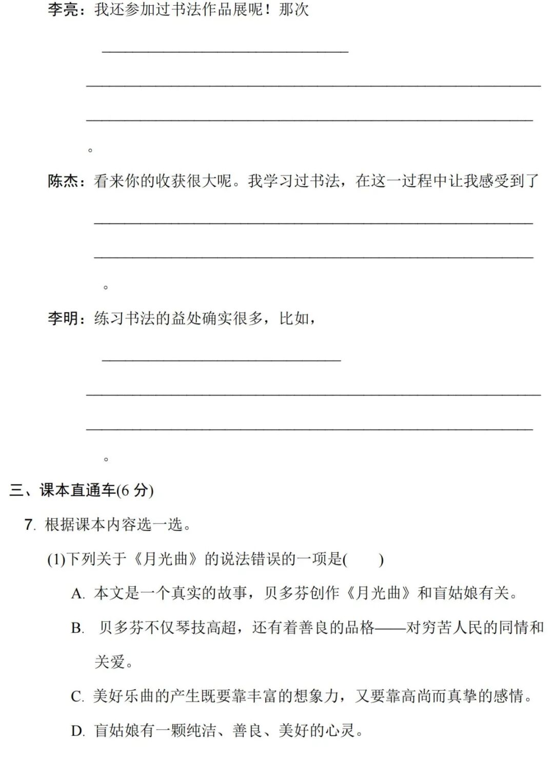 2021统编版语文六年级(上册)第七单元试卷多套,可打印