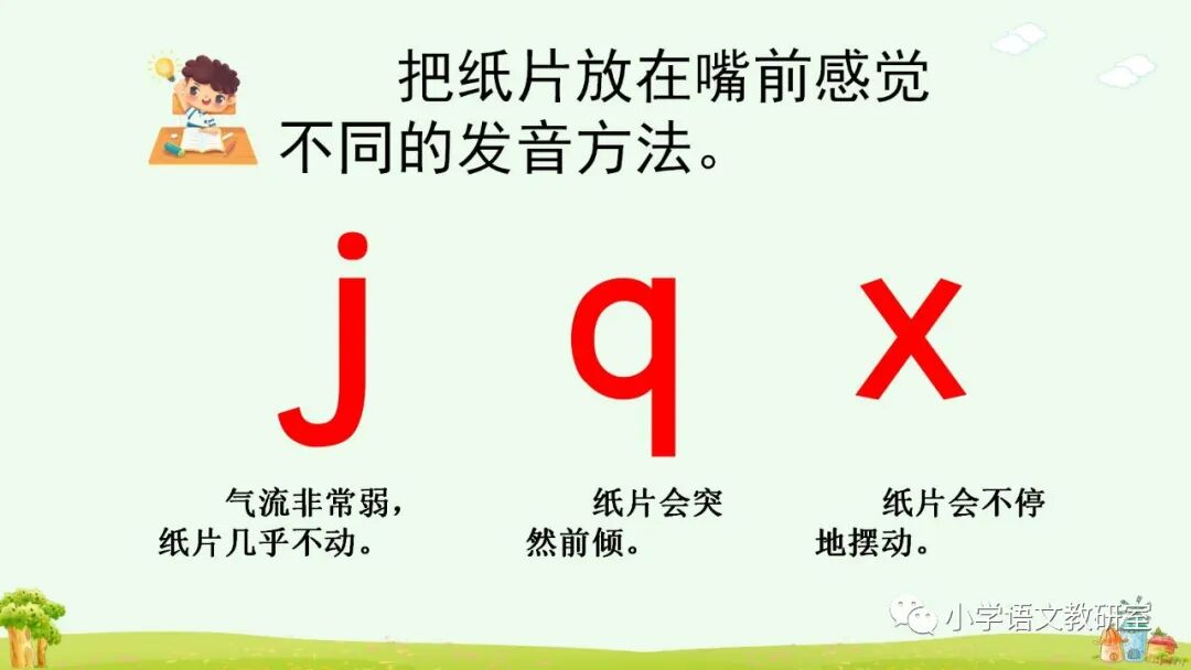 发 q 时,q的发音方法跟 j 大体相同,只是送出的气流较强。