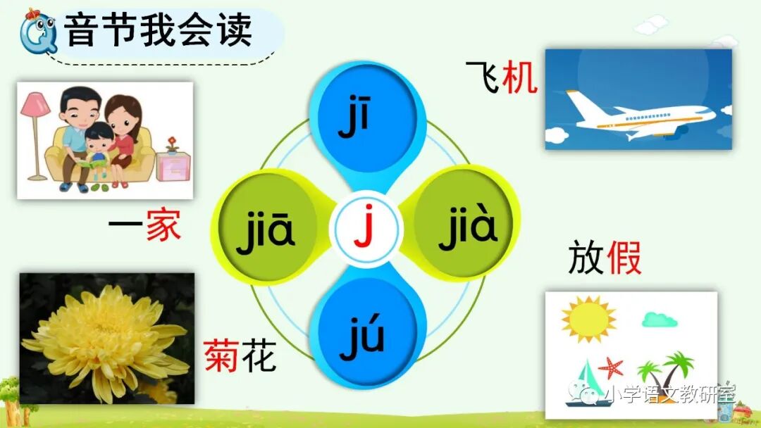 声母j q x 只能和单韵母中两个带点的字母(i ü )拼合成音节,不能和u拼合组成音节。