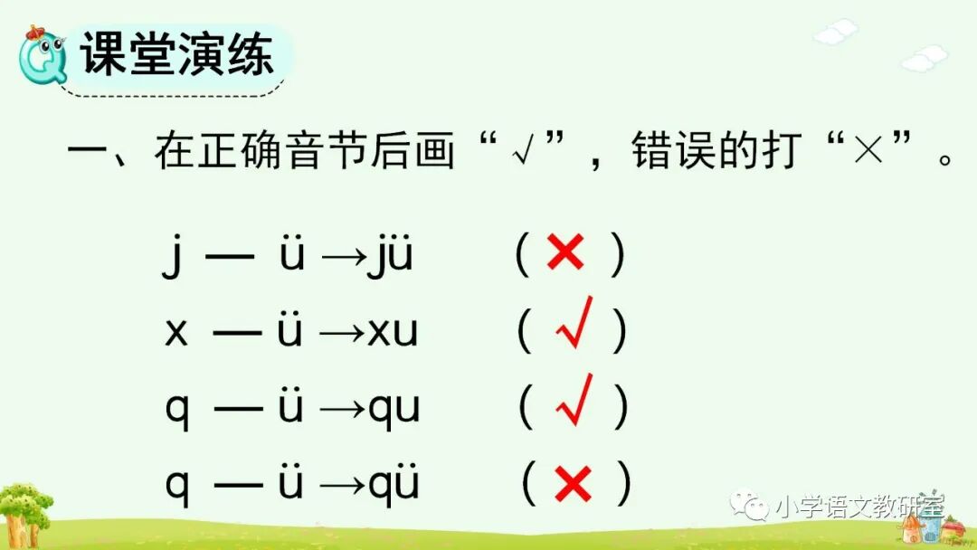 j q x 和 ü 相拼 ü 上两点要省略。