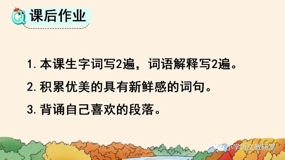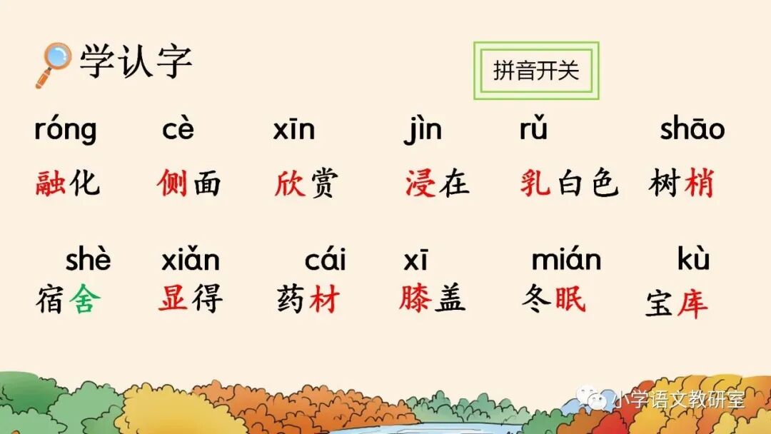 为了让大家能更好的预习新课文,教研室的老师开设了【微课堂】栏目,详细讲解每一课的知识点,有名师课堂视频,课件图解,还有精选同步练习。是家长、学生复习预习好帮手。建议各位家长、老师,为孩子收藏!让孩子提高预习和巩固效果!!