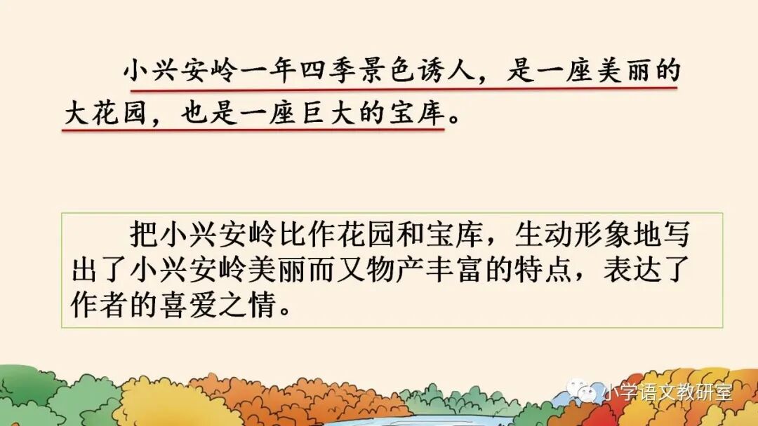 第三部分(6):总写小兴安岭是美丽的大花园、巨大的宝库。