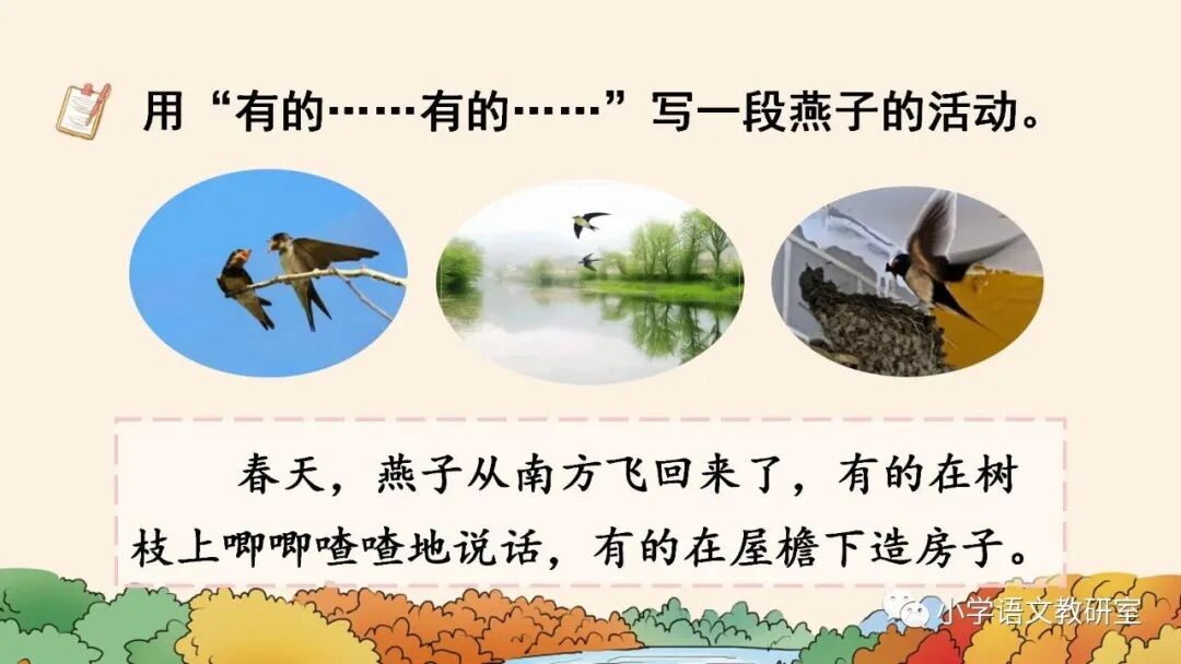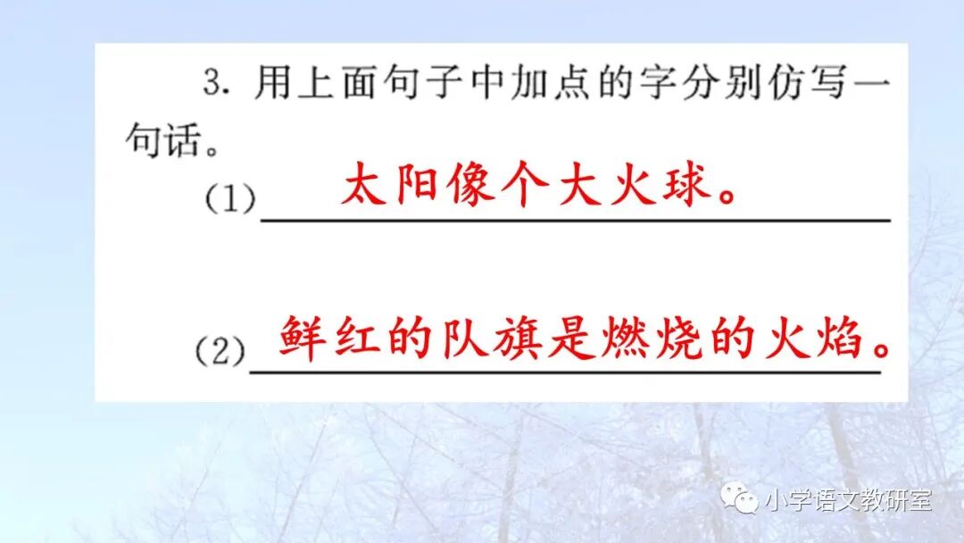 提示:学习本文写景物的方法:选择能反应这个季节的有代表性的景物来写,写出景物的特点。