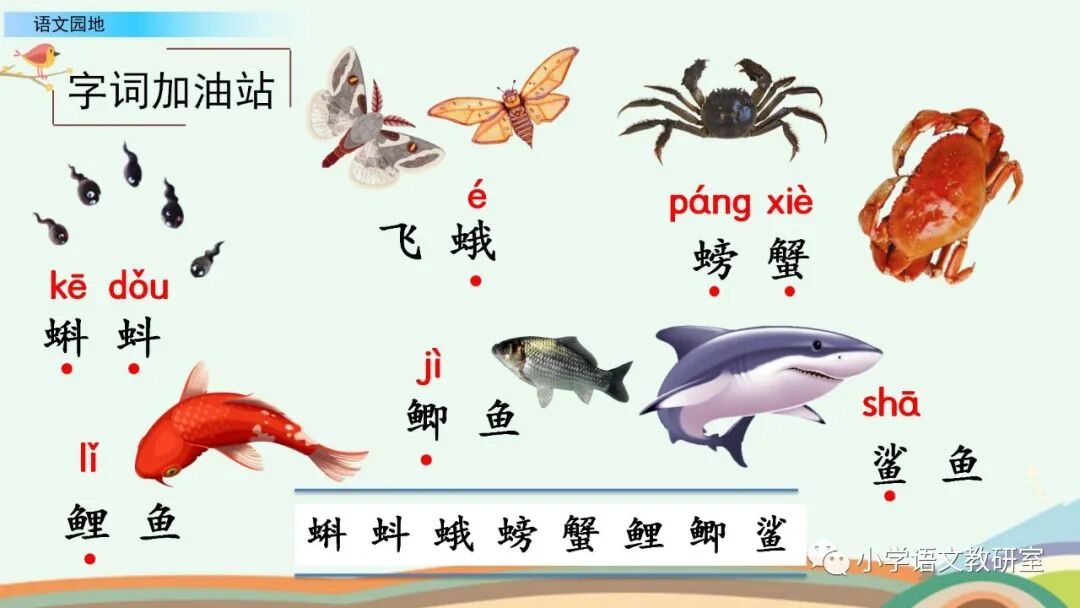 蝌、蚪、蛾、螃、蟹、(虫字旁)