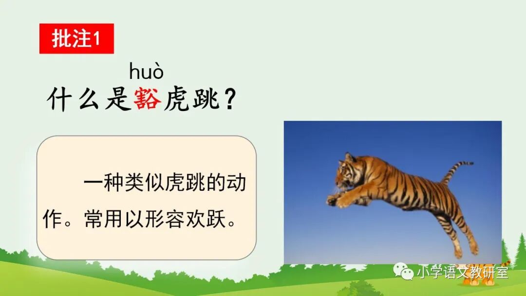 豁虎跳:一种类似虎跳的动作。形容欢跃。