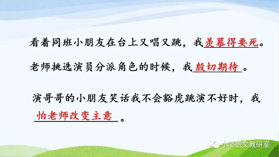 期待表演 | 想在台上露脸,获得大家的掌声 |