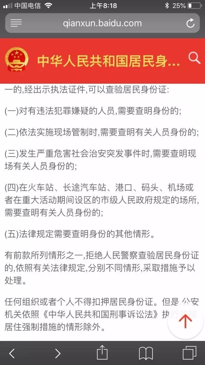 这部法律我还是读过多遍的,我当即表示他无权根据这条法律查我身份证。