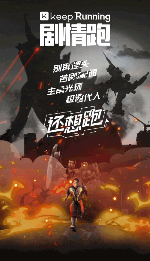 Keep针对跑步功能进行了发力:刚上线时,仅有轨迹记录和数据统计两项基本功能,后来逐渐有了「燃脂分段跑」和「法特莱克」训练课程,还有了「音乐跑」和首创的「剧情跑」(可以在跑的同时体验环太平洋机甲战斗,厉害了