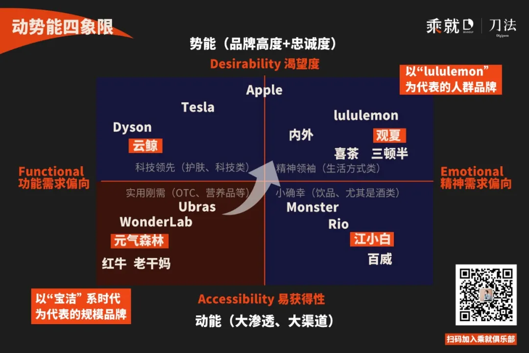 右上角象限(强势能,强精神)的品牌,是我常称的精神领袖派。