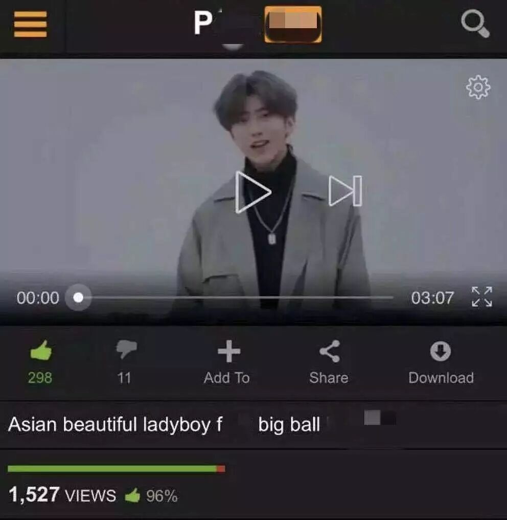 还有人截屏发出某著名视频网站P***Hub的图片,放着蔡徐坤打球的视频,标题写着Chinese beautiful ladyboy f***ing big ball (亚洲美丽人妖干球视频)