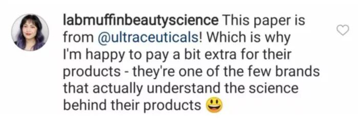 “这份报告来自@ultraceuticals,所以我愿意付更高的价格。因为它们是少有懂得产品背后科学的品牌!”