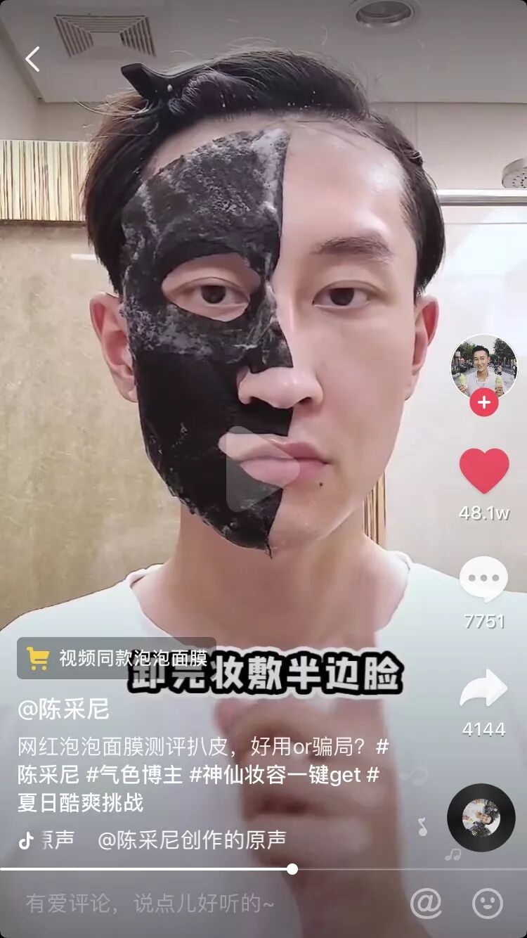 如果你常刷抖音,最近一定刷到过:博主拿出一张黑色的面膜,贴在脸上后面膜会自己发出泡泡,号称「脸越脏泡泡越多」。