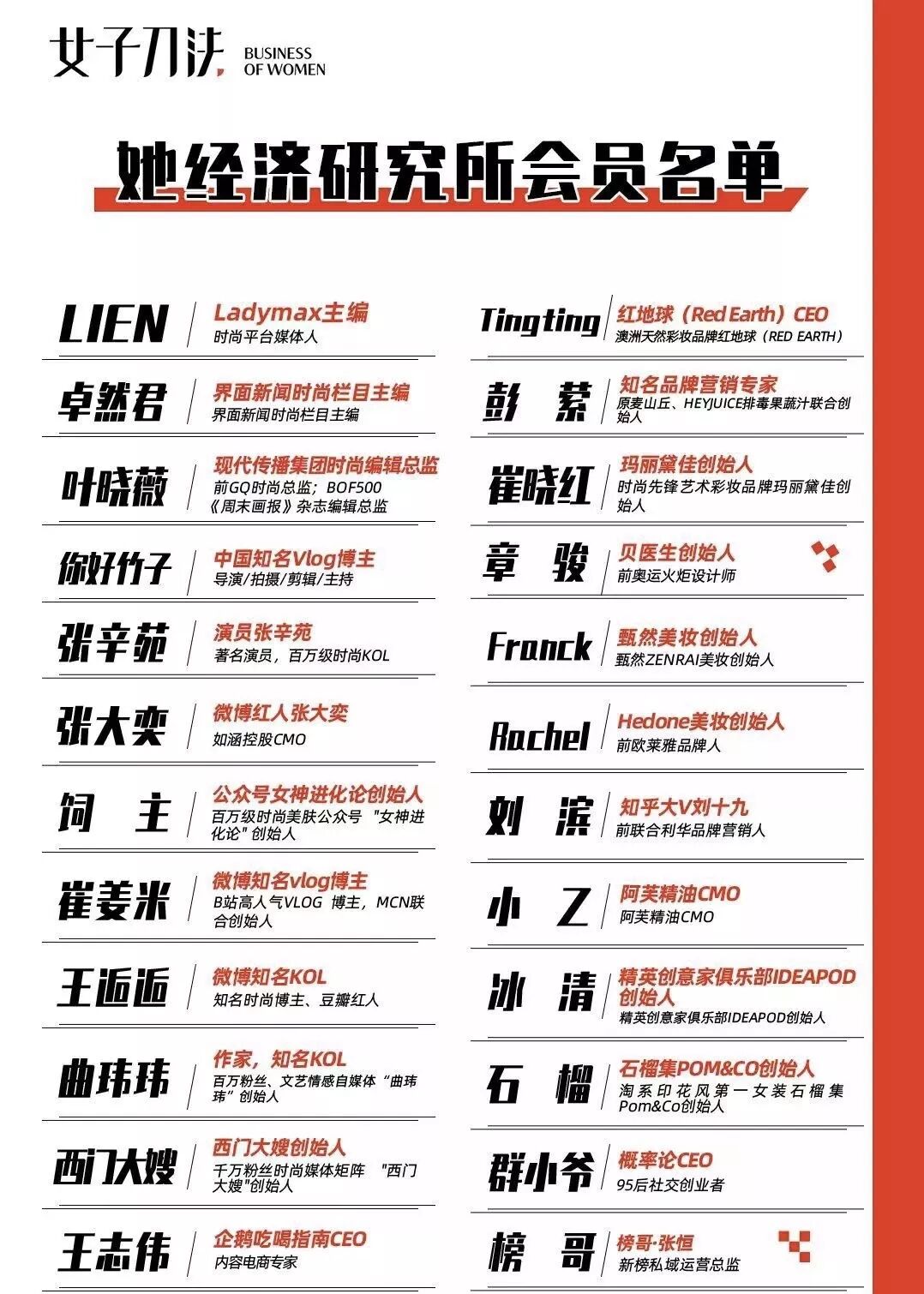她经济研究所,是女子刀法旗下以「研究女性消费」为中心的行业俱乐部。我们在这里讨论行业趋势、女性消费趋势、增长方法论。