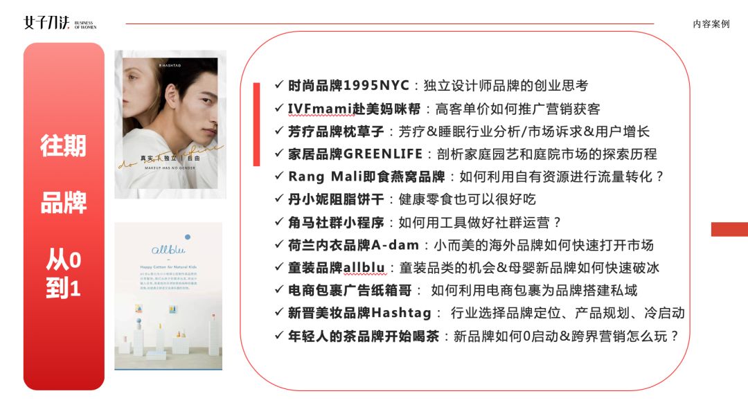 每周至少一场的新锐品牌线上分享,复盘品牌从0到1的方法论经验。如果你要做品牌,这是一个完全可以拿来实操的案例分享;如果你的品牌需要行业建议、曝光,这是个很好的平台让你做品牌分享。