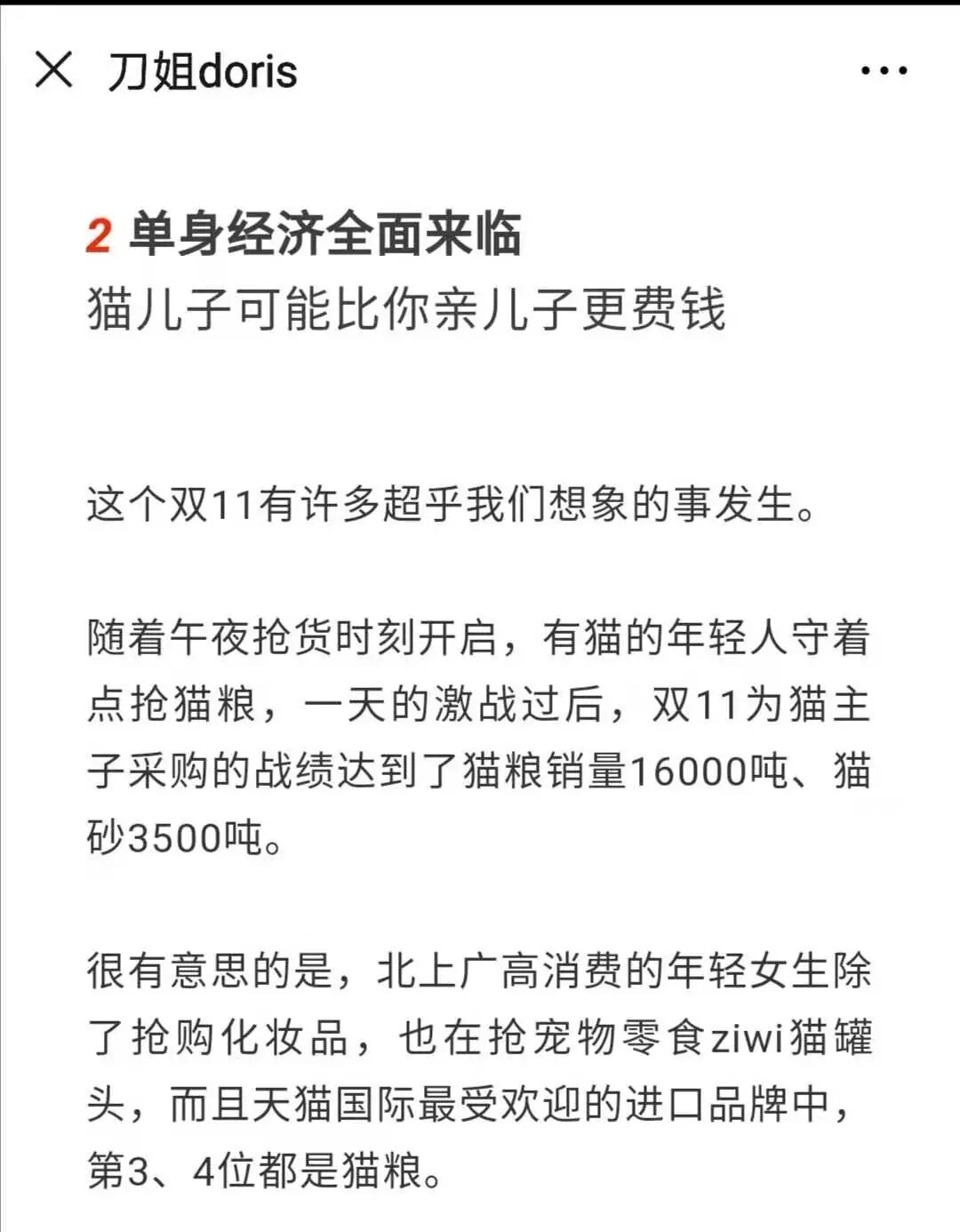 ▲我们也分析过今年双11的单身萌宠经济