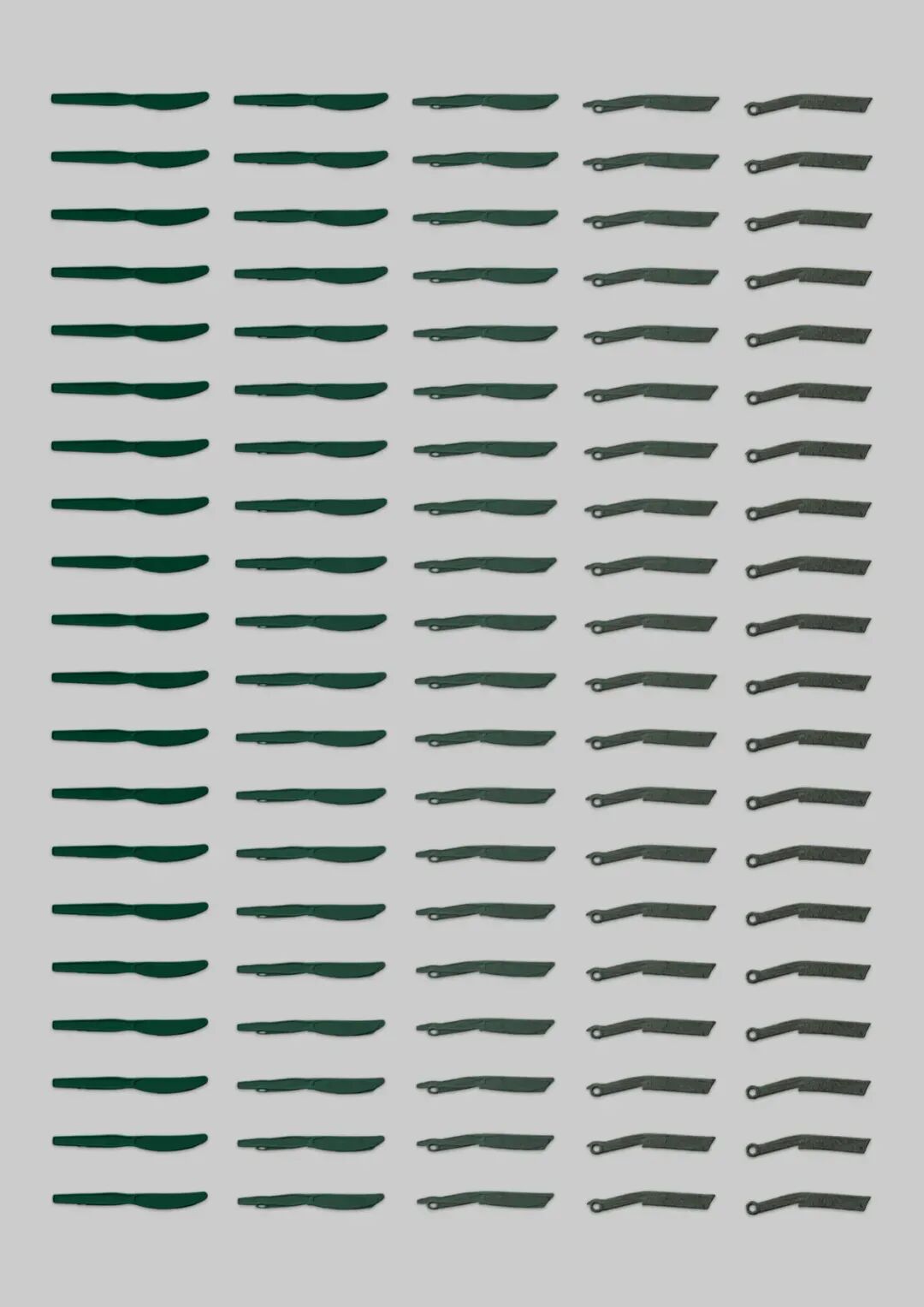这是今年我比较重要的一个项目,虽然它的产出物非常小。简单地说,就是我铸造了一百把绿色的刀,半虚构了从一把星巴克塑料餐刀到一枚先秦刀币之间的演化史。这一百把刀是这两种刀在形态上的杂交物。正如我前面的回答,相比起艺术或者设计这样的定义,我对于整个人造物的历史以及人类的造物法则更为感兴趣。这个项目对我而言,就是关于「造物史」的,同时也关于一种用图像描述事物的方式。「变形」(morphing)对我而言是一种很有趣的、描述变化的图示方法。这种方法被大量使用,却并未获得过足够的重视。你知道,只要把这两把绿色的刀——星巴克塑料餐刀和刀币——放置在一起,观看的人其实就能够感受到它们之间的视觉联系和趣味。但一整个变形序列会将这种关联变得更加肯定和造作,仿佛在不断地向观者再次确认、反复核查他们双眼就能看到的联系。这个过程也会产出大量的物质杂交「怪胎」。我对这种做法很感兴趣。