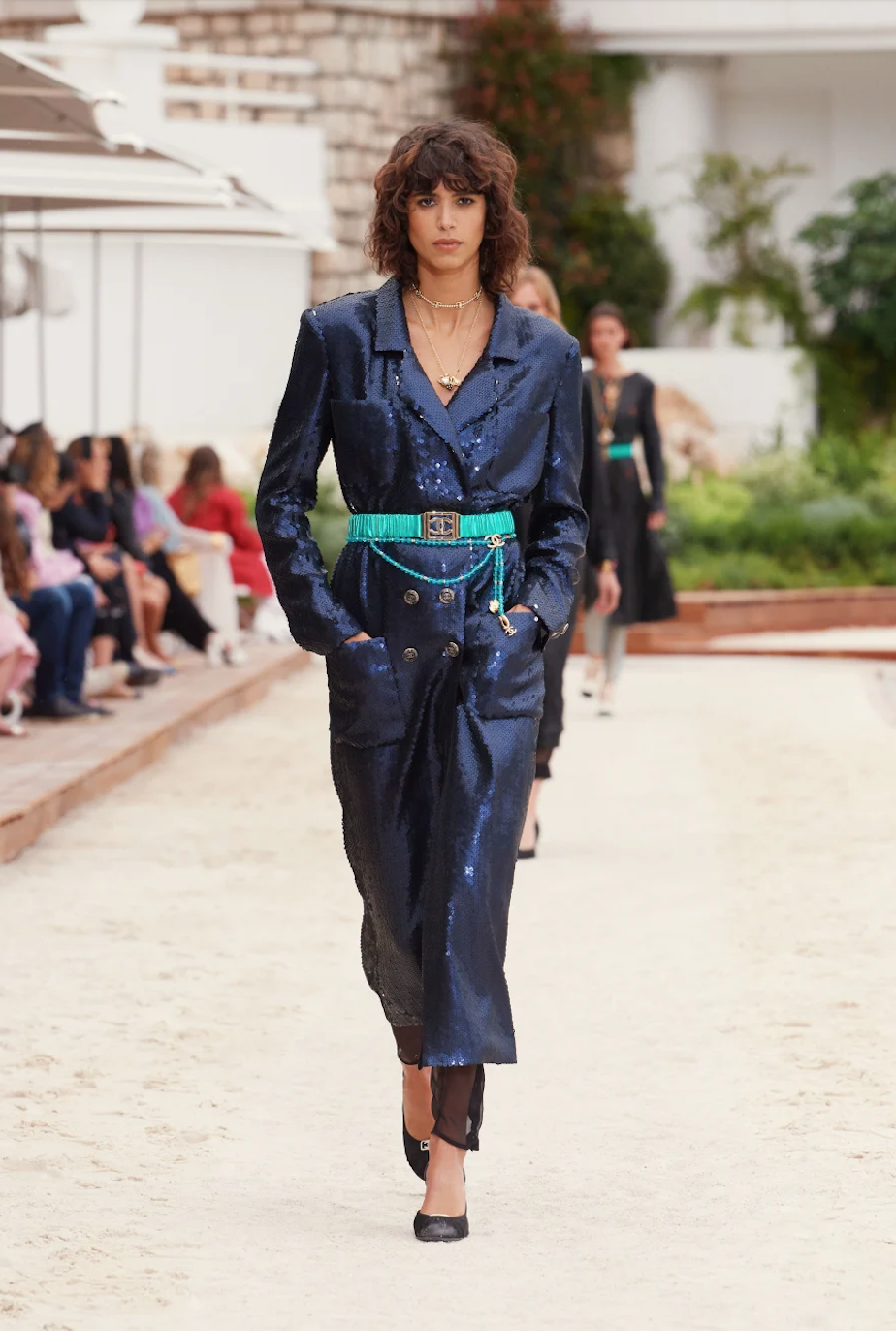 本月初,Chanel 以一场壮观的时装秀拉开本季的序幕。品牌以蒙特卡洛的海滩生活方式和 Chanel 之于蓝色海岸的品牌历史脉络为灵感,将海滨运动装与现代魅力交织呼应,展现出精致的别样廓形。